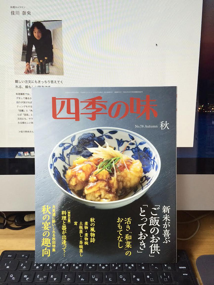 出ました!四季の味~秋号~。表紙は日本橋の「櫻川」です。今回も料理と器のコラボが素晴らしいです。