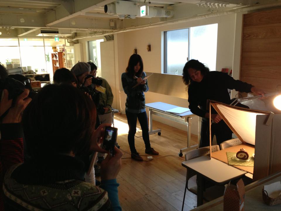 料理写真教室でライティングの説明中であります。2回目の参加の生徒さんもいたり、皆さん本気で撮りメモる!!自然光とライティングを覚えて、夢の印税生活をしましょうw