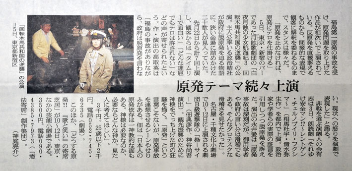 芝居の内容が、原発がテーマなので取材にきたのだ。お手元にある方は見てみてください!