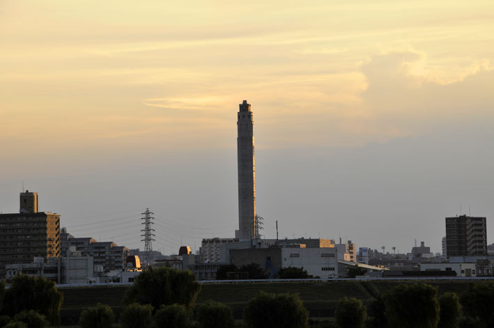 懐かしいような、近未来的なような夕方の煙突。とってもシュール。