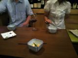 撮影終了後に、明日の撮影などしながら軽い食事。超高給ワインで牛タンをいただく。